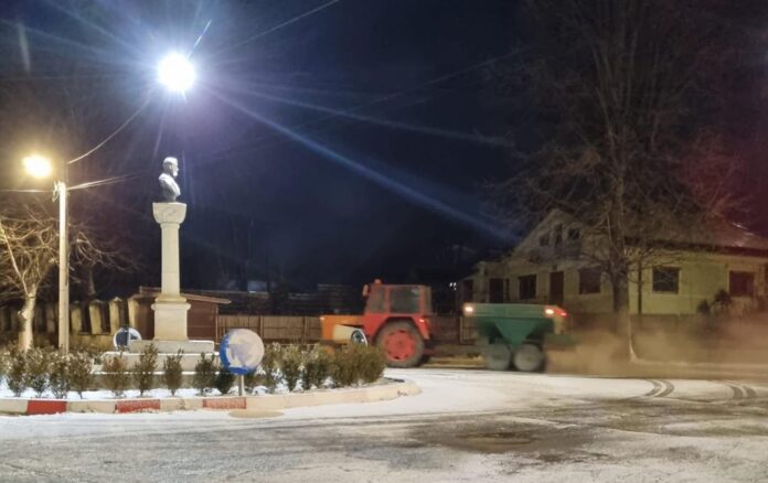 În cursul nopţii şi al acestei dimineţi s-a acţionat cu utilaje, inclusiv prin revizii și material antiderapant.