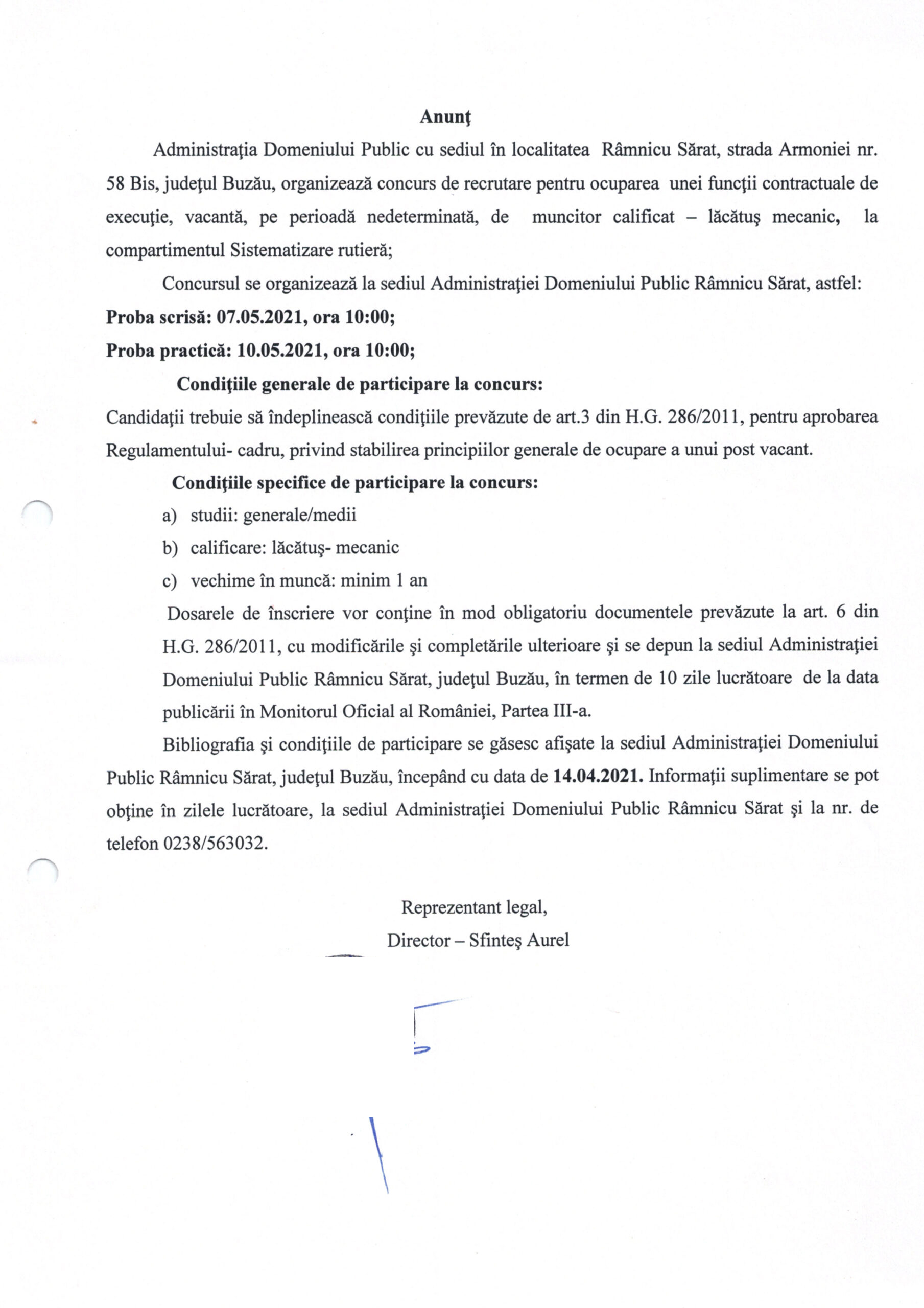 AcasăCONCURSURIAnunț de angajare